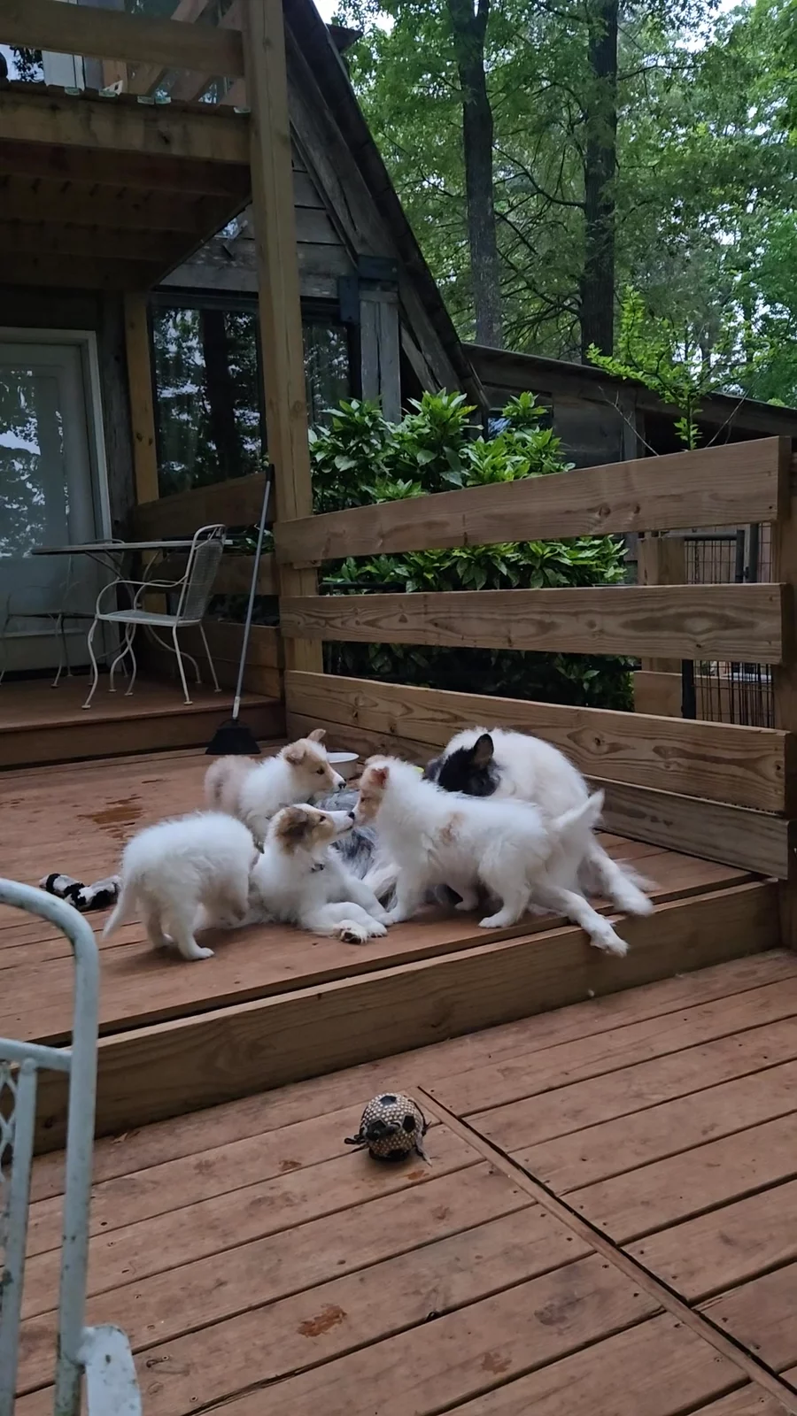Last 4 puppies with Cadence, only one e not spoken for. They go for their second boosters and vet exam this morning. Three of them will go home to their new owners this week.