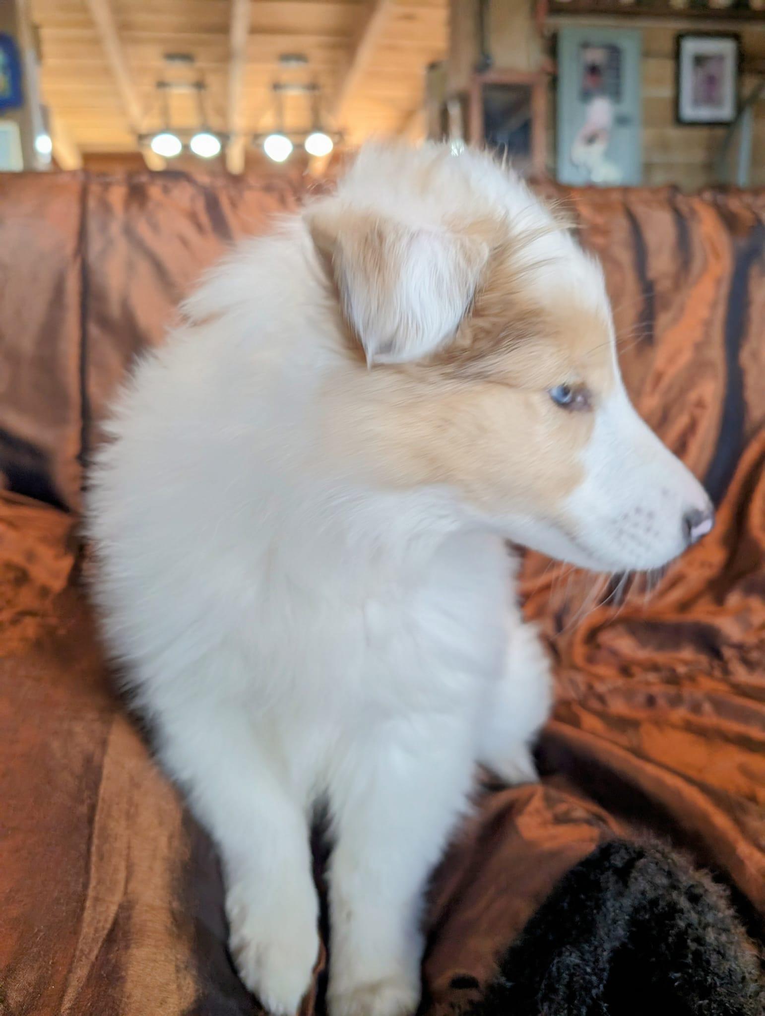 Cadence is a great momma; this is her third litter She loves her family and living out in the country with our other collies and miniature horses. She loves to play fetch and likes to walk with me on morning walks. Cadence especially loves treats. She loves to lay next to our bed at night. She is a real sweetheart.