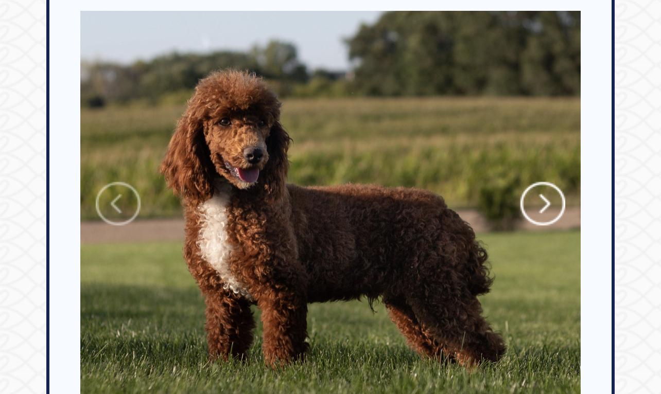 Rusty is a male Poodle. Carefully selected as a great representative of his breed, Susan decided to make him part of their program. Susan has passed Good Dog’s screening process, which involved a review of their breeding practices, environment, and the mental and physical health of their dogs.