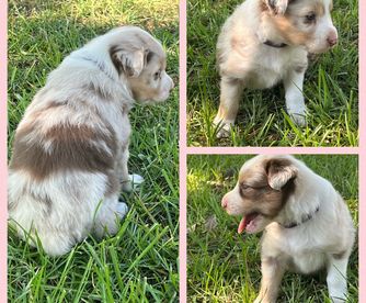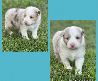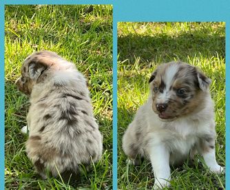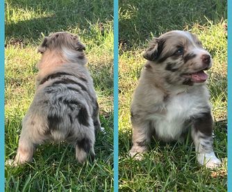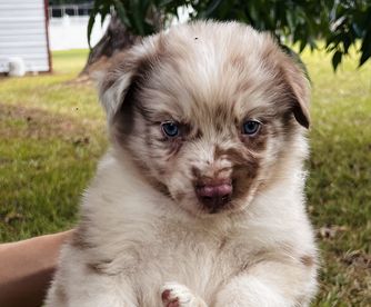 Our puppies include red merle, black tri-color, and red tri-color. Colors will vary depending on the parent dogs.
