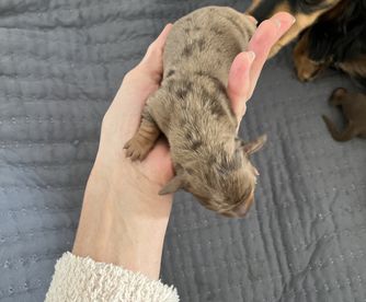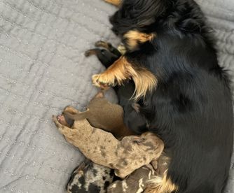 I'm Colby S., the breeder behind DOXA Miniature Dachshunds located in Benton City, WA. We work hard to produce healthy, well-rounded miniature dachshund puppies that will make others as happy as our dogs have made us! Our dogs have been selected from champion lines all over the world to showcase their stunning beauty, excellent conformation, as well as loving temperament.