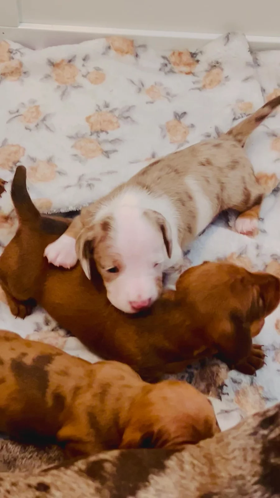 Our babies are halfway through this process now looking for their forever homes. We currently have four available all are male 🐾 I love watching them play and taking little milestones like getting weaned off mama and almost ready for puppy mush. Absolutely love our Littles.