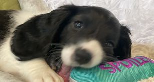 Lainey Joy -Dappled White ,Black & Tan Piebald Longhaired Female