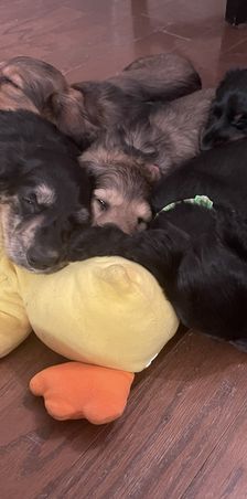 They both have incredible pedigrees but truly it was their personality. I fell in love with Sunshine and Oski and wanted to see their litters! Their puppies are highly complimented on coats, physical traits and well-being from every vet I see and other breeders. Sunshine was bred for color and back strength while Oski was bred for agility.
