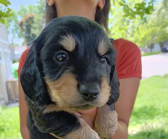 Our puppies include chocolate and tan and black and tan. Colors will vary depending on the parent dogs.