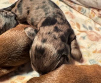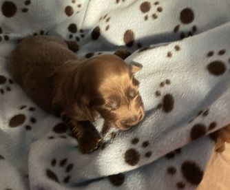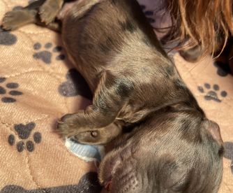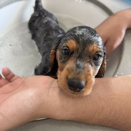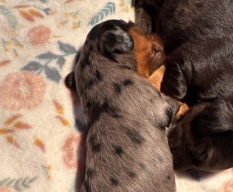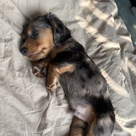I'm Samantha C., the breeder behind Doxie Gang located in Mc Donough, GA. We do our best to socialize and acclimate each litter so we’re able to offer all-around healthy and well-mannered puppies! Our puppies are raised with love in our home, and we strive to help each one grow up with confidence so they are ready to thrive with their new families. They are affectionate, intelligent, and cute as can be!
