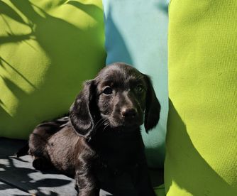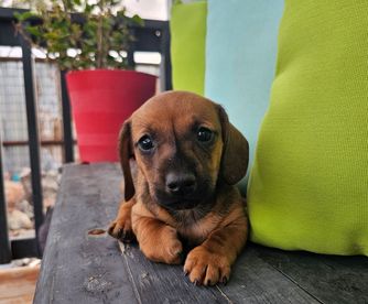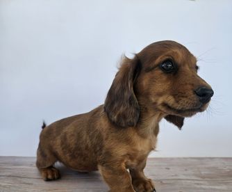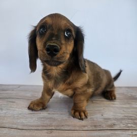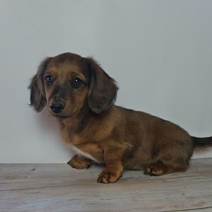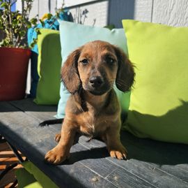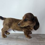 Daisy is a female Dachshund. Carefully selected as a great representative of her breed, Brianna decided to make her part of their program. Brianna has passed Good Dog’s screening process, which involved a review of their breeding practices, environment, and the mental and physical health of their dogs.