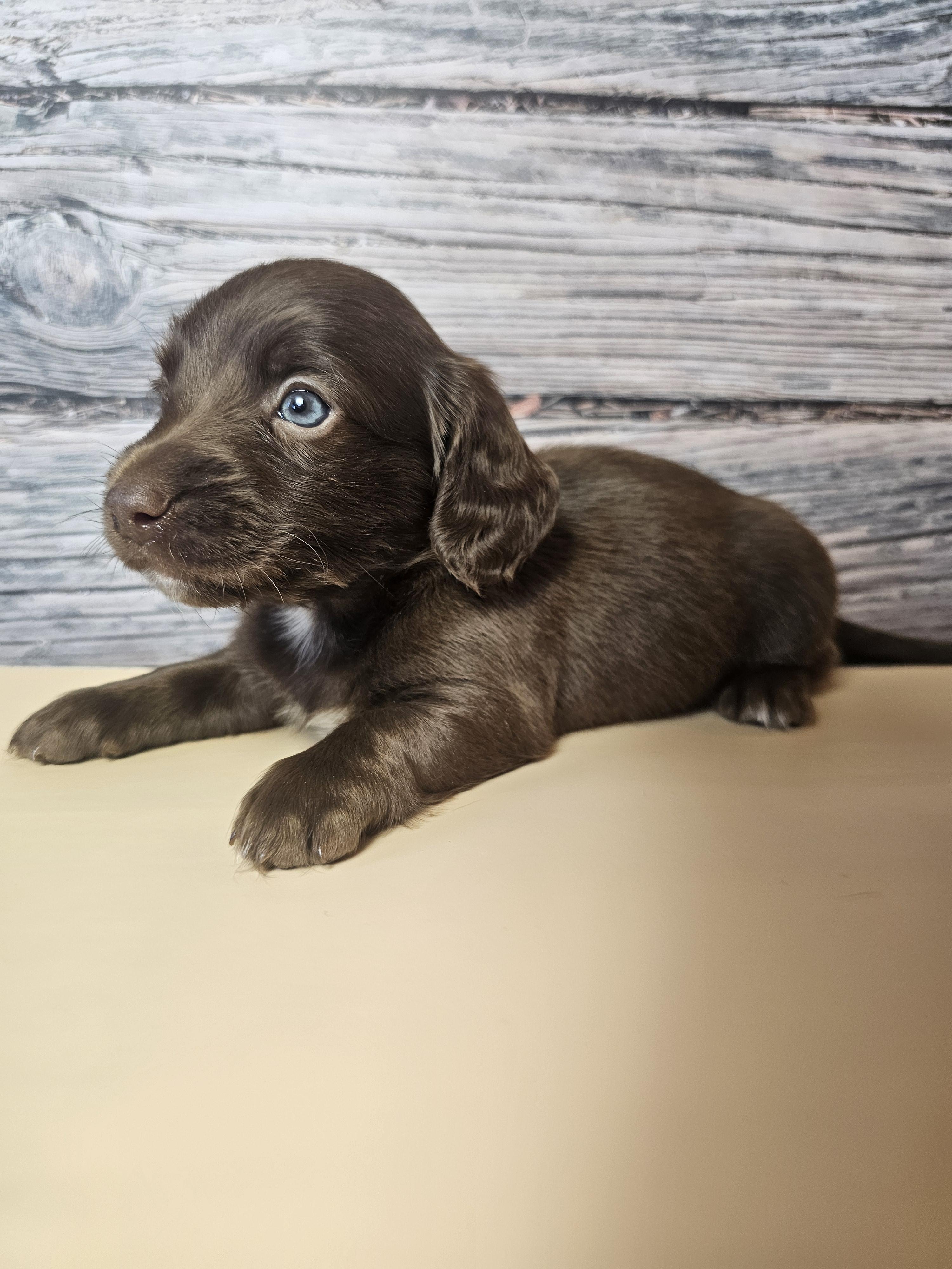 Lizzy is a female Dachshund. Carefully selected as a great representative of her breed, Brianna decided to make her part of their program. Brianna has passed Good Dog’s screening process, which involved a review of their breeding practices, environment, and the mental and physical health of their dogs.
