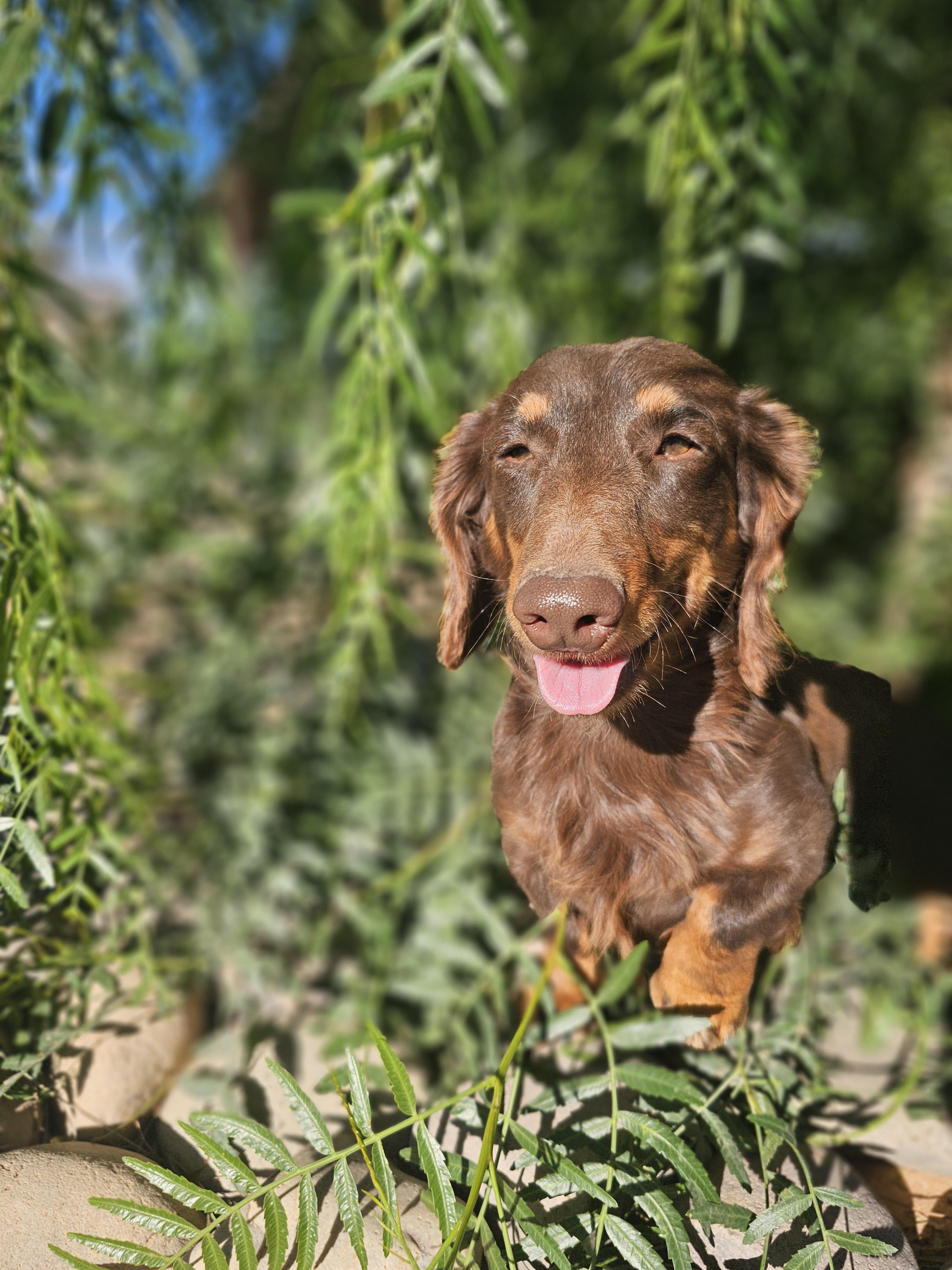 Django is a male Dachshund. Carefully selected as a great representative of his breed, Brianna decided to make him part of their program. Brianna has passed Good Dog’s screening process, which involved a review of their breeding practices, environment, and the mental and physical health of their dogs.