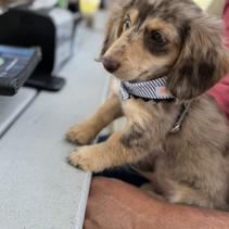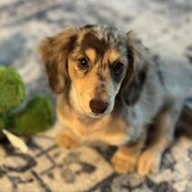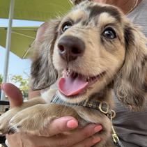 Hershey is a female Dachshund. Carefully selected as a great representative of her breed, Vicki decided to make her part of their program. Vicki has passed Good Dog’s screening process, which involved a review of their breeding practices, environment, and the mental and physical health of their dogs.