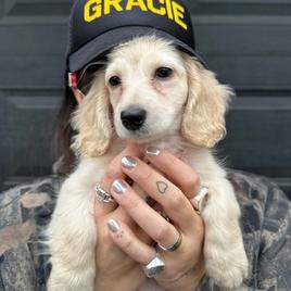 Bear is a male Dachshund. Carefully selected as a great representative of his breed, Vicki decided to make him part of their program. Vicki has passed Good Dog’s screening process, which involved a review of their breeding practices, environment, and the mental and physical health of their dogs.