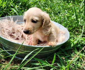 I'm Katelyn R., the breeder behind Doxieland Delight located in Cleveland, AL. We love this breed and the experience of having litters! Our mission is to raise pups that are set to become the best companions. We raise our litters in our home to help set the foundation for happy and confident puppies to transition well into their forever homes.