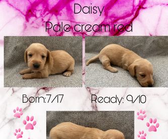 Our puppies include cream, red, chocolate and tan, black and tan, chocolate and cream, black and cream, and dapple. Colors will vary depending on the parent dogs.