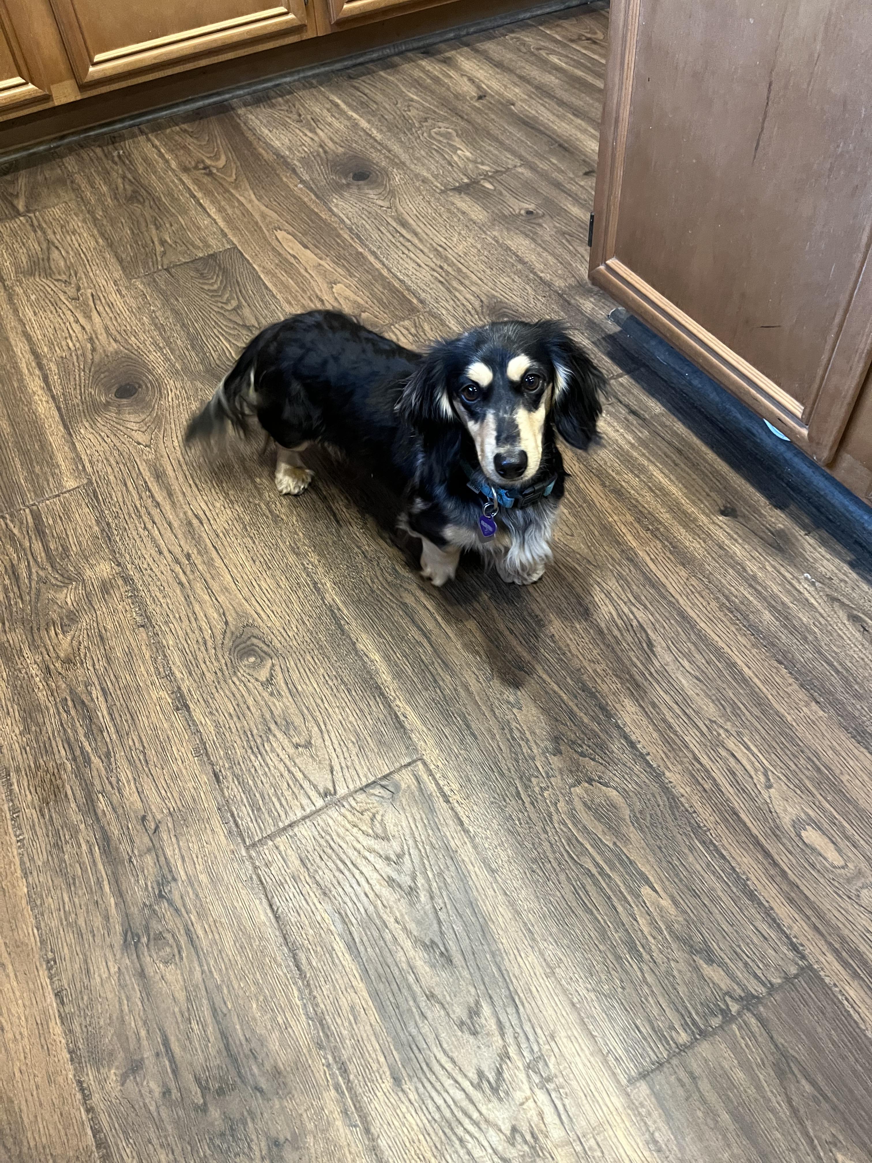 Calico is a male Dachshund. Carefully selected as a great representative of his breed, Nikki decided to make him part of their program. Nikki has passed Good Dog’s screening process, which involved a review of their breeding practices, environment, and the mental and physical health of their dogs.