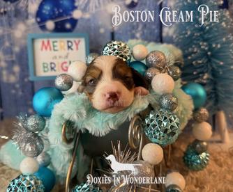 Our puppies include piebald, cream, red, chocolate, brindle, chocolate and tan, and black and tan. Colors will vary depending on the parent dogs.