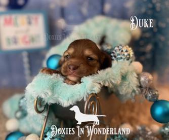 I chose Doxies in Wonderland because of their health-conscious approach to the dachshund breed. They conduct a slew of genetic testing and were happy to talk through the results with me. I had such an amazing experience with Maggie and her husband. They were very communicative at every step and ensured I got the puppy of my dreams. I love my little dog! He's so sweet loving playful and very handsome.