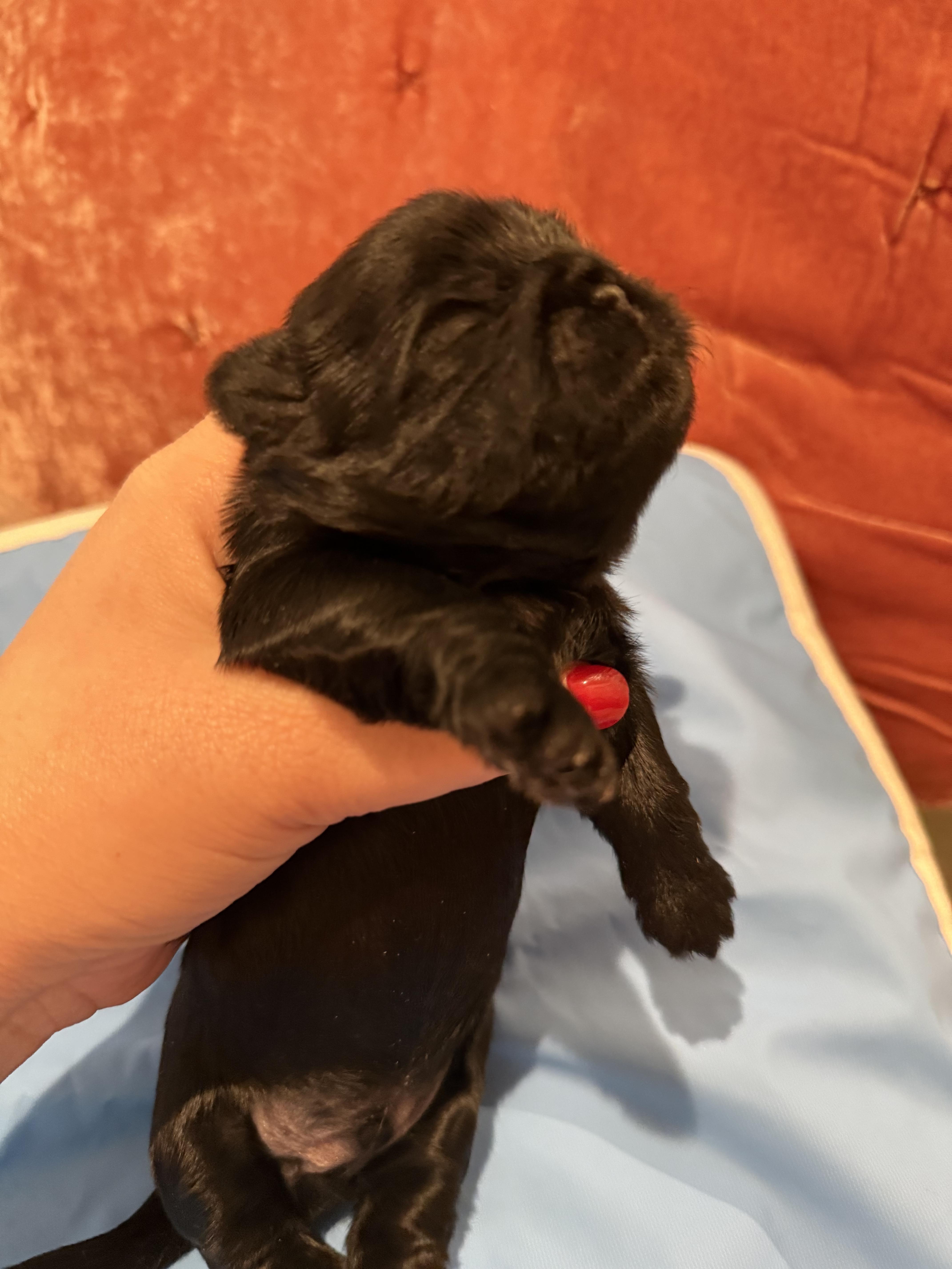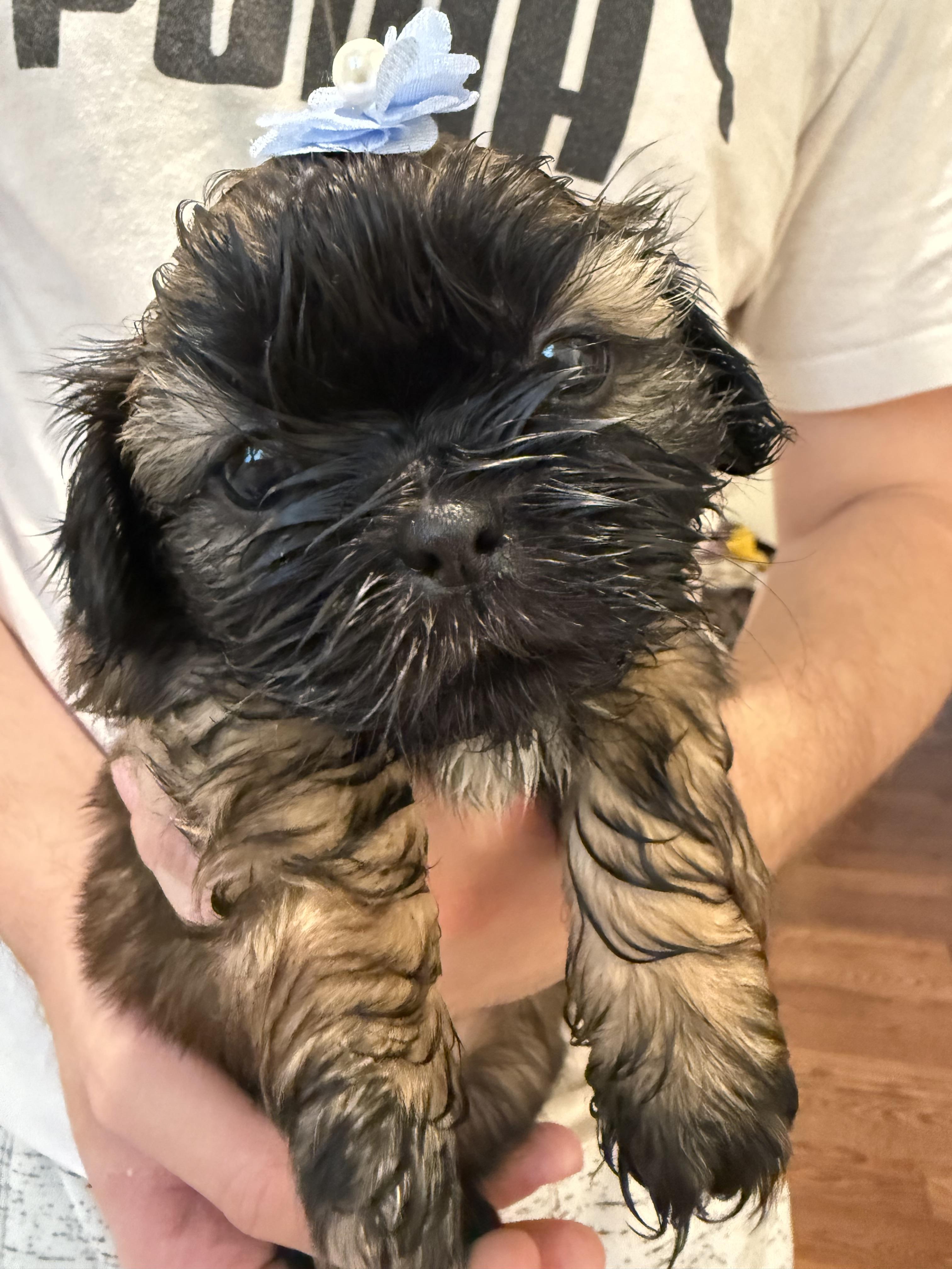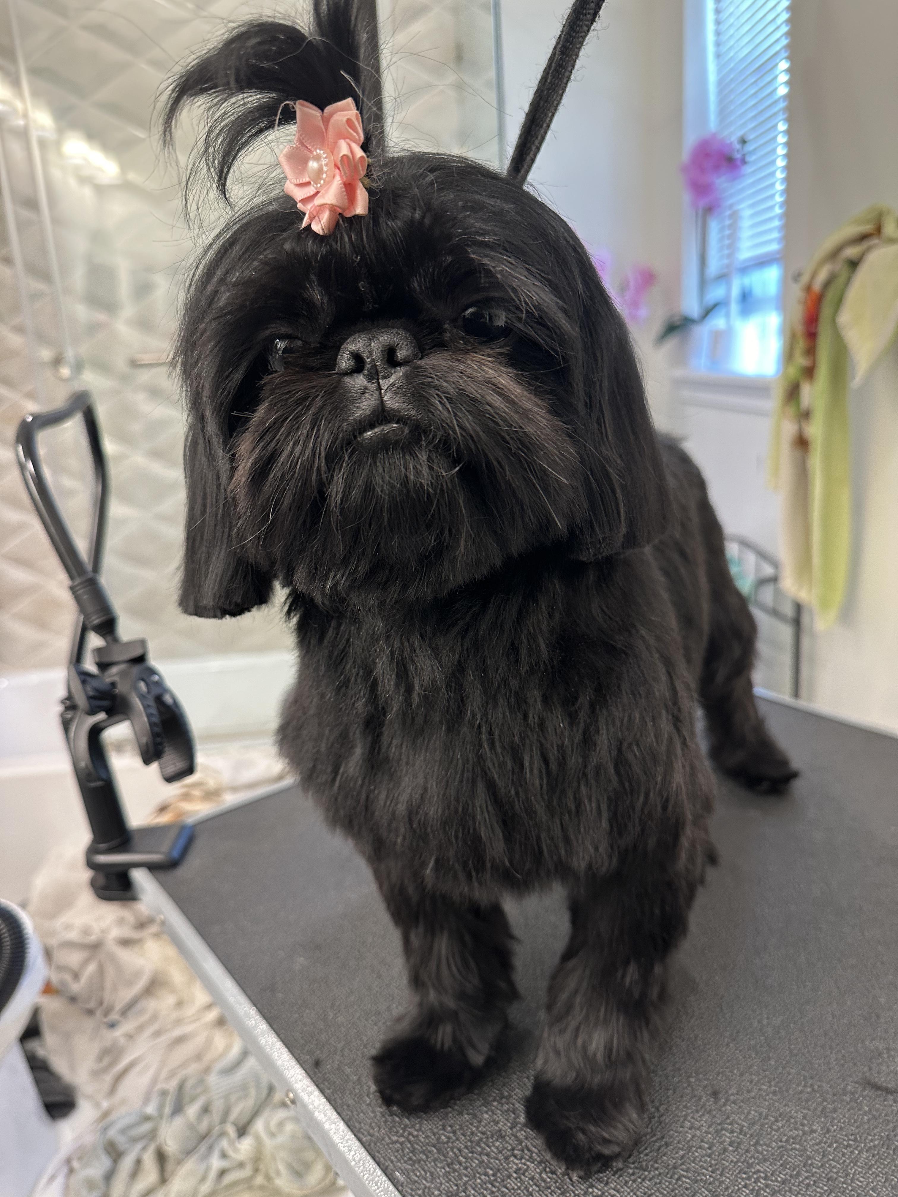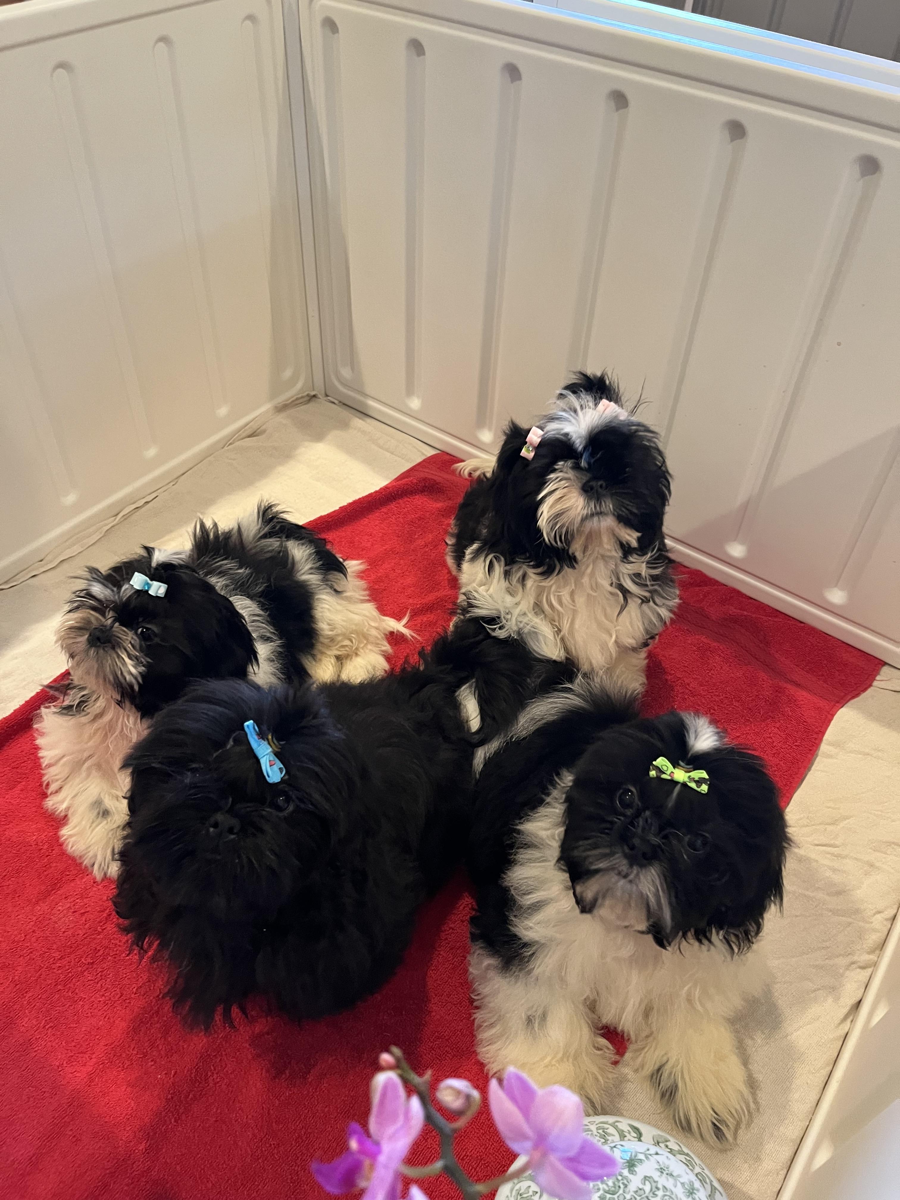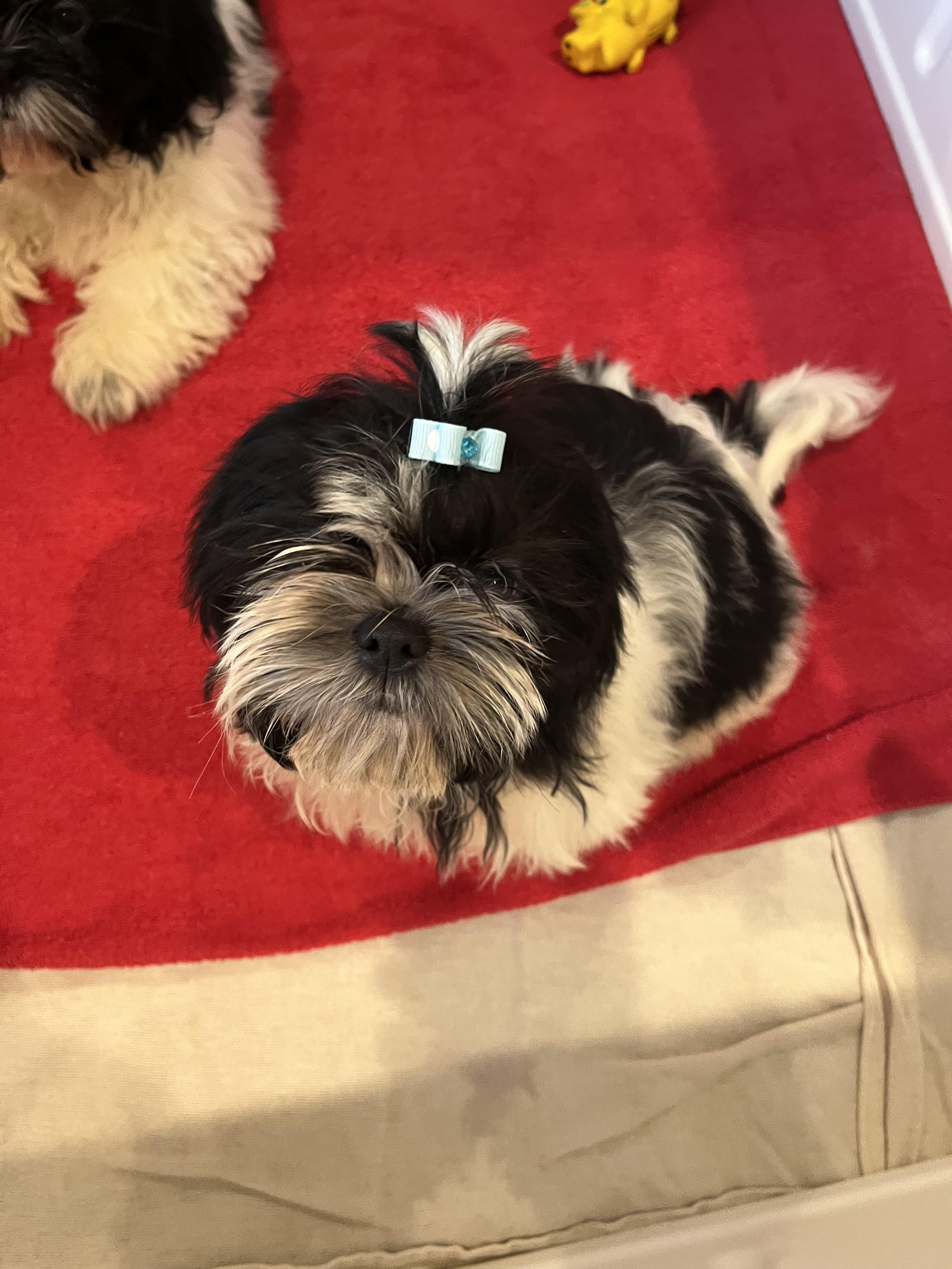 Tesla has a great shih-tzu personality, loves to feel special and she is the queen of our hearts. She us great with grooming, loves observing and enjoys outdoors, parks and car rides, she is very affectionate. Tesla has beautiful liver brown coat and is an absolute sweetheart, nicely tempered, spoiled and adored by our all family members. She is a very attentive mother and has a happy+ affectionate personality, gets along with everyone. Tesla is going to retire this year and this litter is her last one, we want to enjoy her off duty. Her puppies are super cute, come in different color combinations and we love feeling their kicking in the belly. She is our special momma.