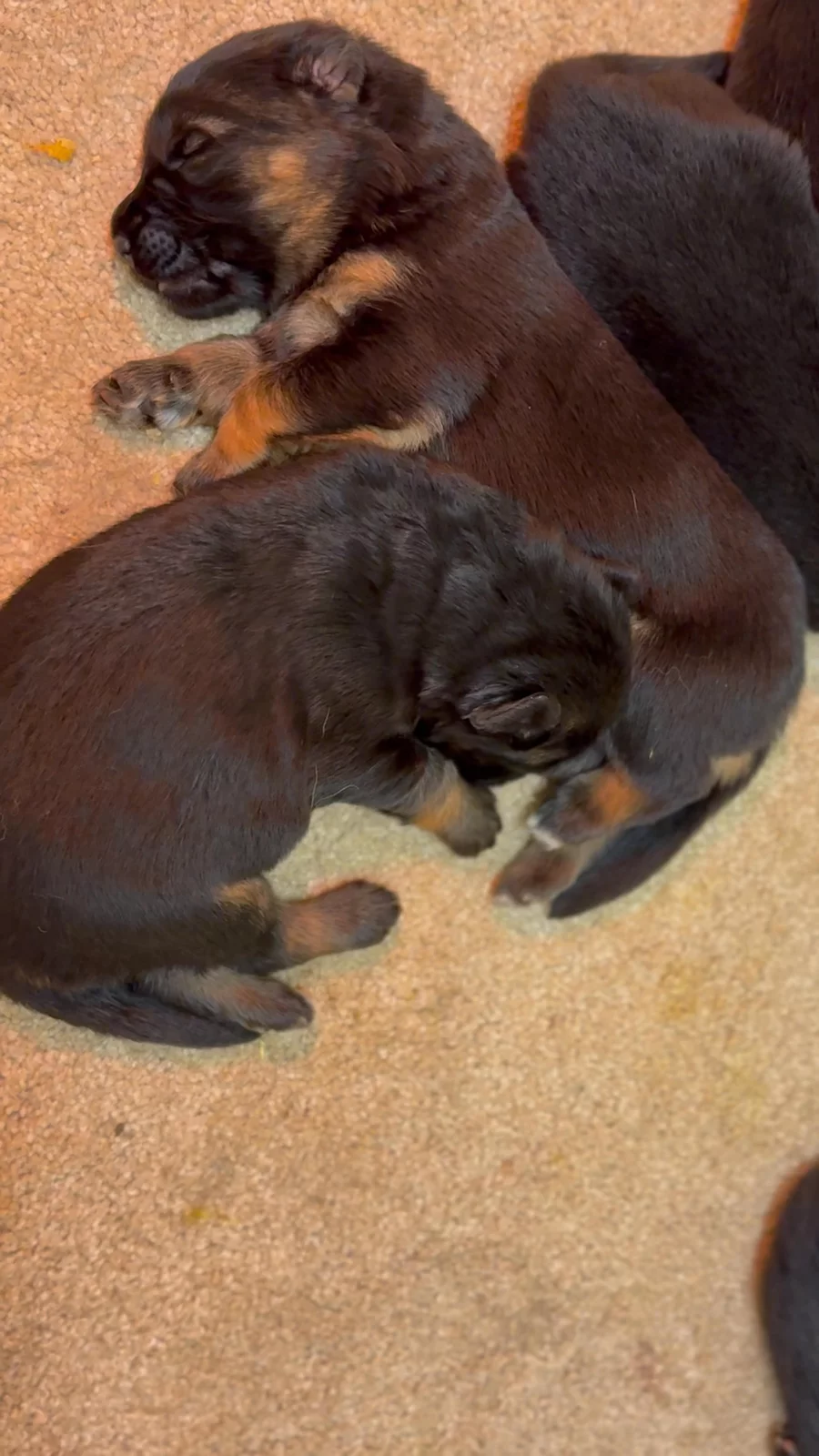 The Rocky and Essy puppies at 8 days old. Stunning color and pigment 😍
