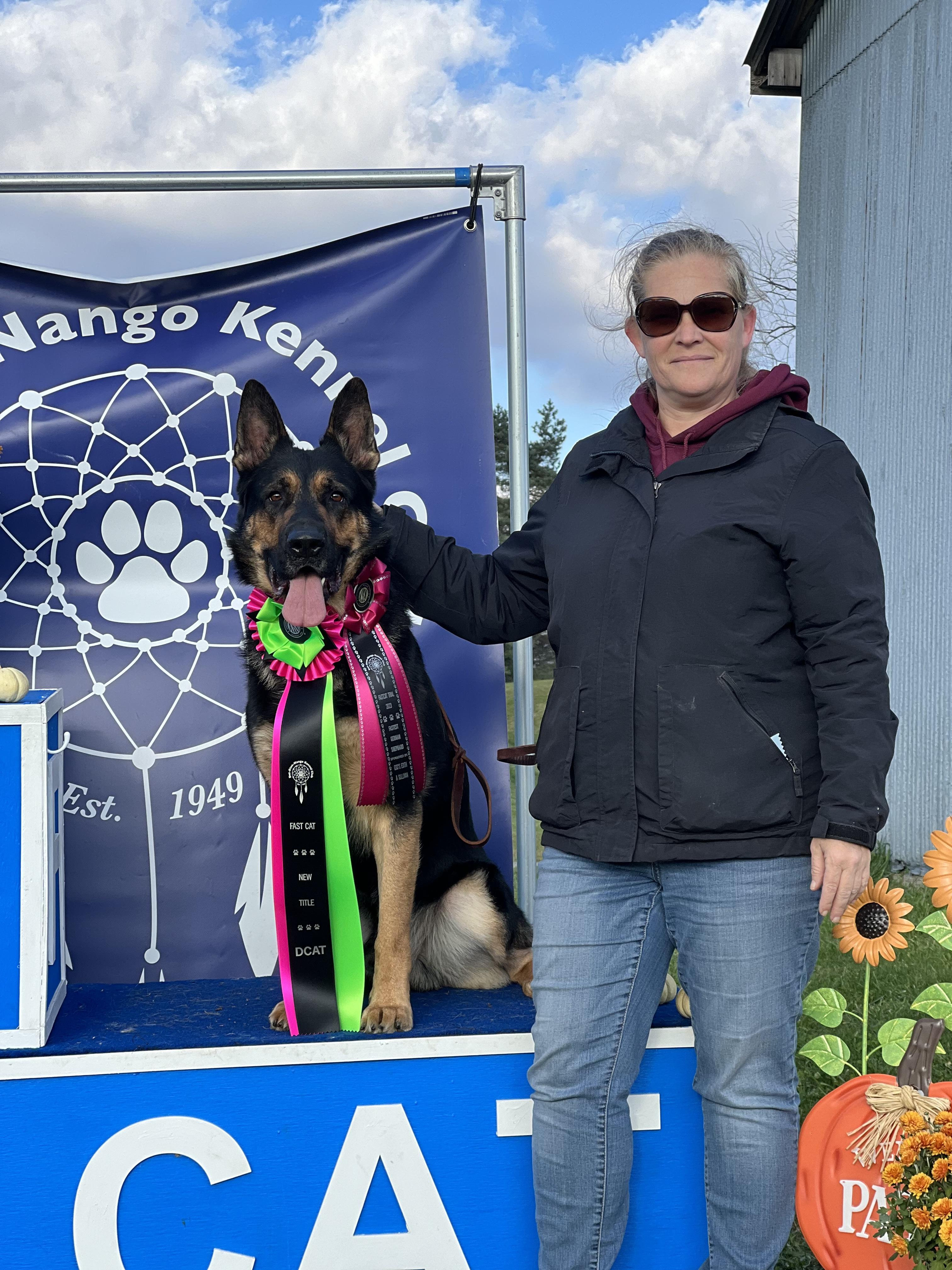 I'm Laura D., the breeder behind Drachenhaus Shepherds located in Greece, NY. We breed for not only great looks, but for superior temperaments as well. Our dogs are active in Rally, CGC, Trick Dog, Scentwork, FastCat, BarnHunt, DockDiving, Farm Dog and others - they hold many titles in these sports. We occasionally have pups available. All of our breeding dogs have been OFA'd hips and elbows, DM tested, and full Embark paneled. Our dogs are fed a premium dry food containing minimal grains and additives, supplemented with lean meats and healthy, natural fats and proteins. Our dogs are not kennel dogs, they are our family pets and live in our home with us. All our pups are raised underfoot in our home and are socialized with adults, children and other dogs from day one, so you can be sure that your puppy comes to you as a happy, healthy, well-rounded new addition to your family!