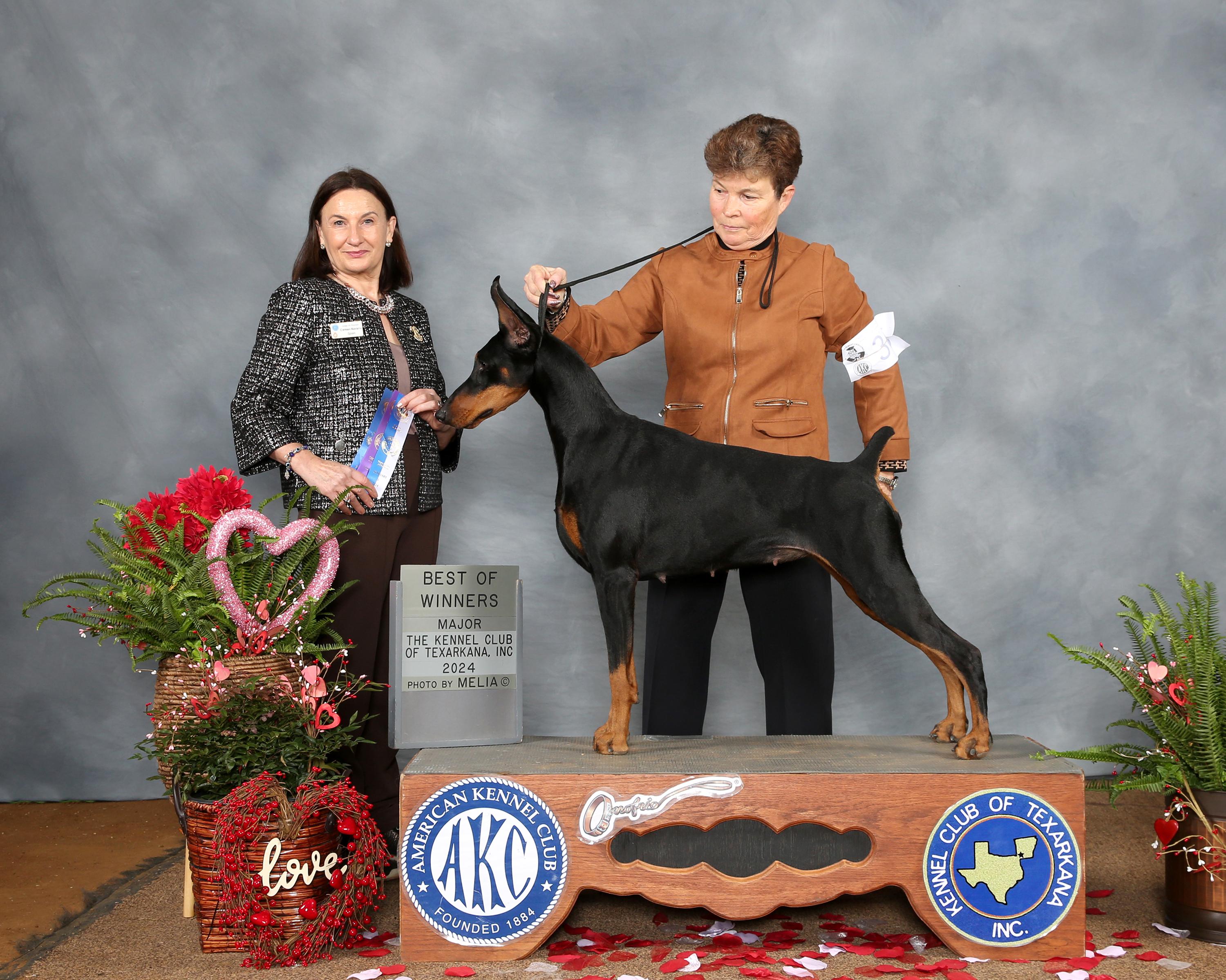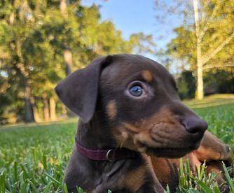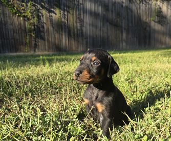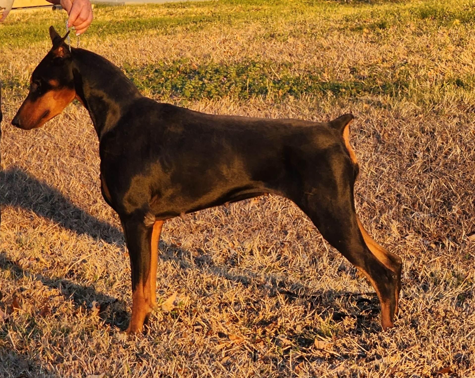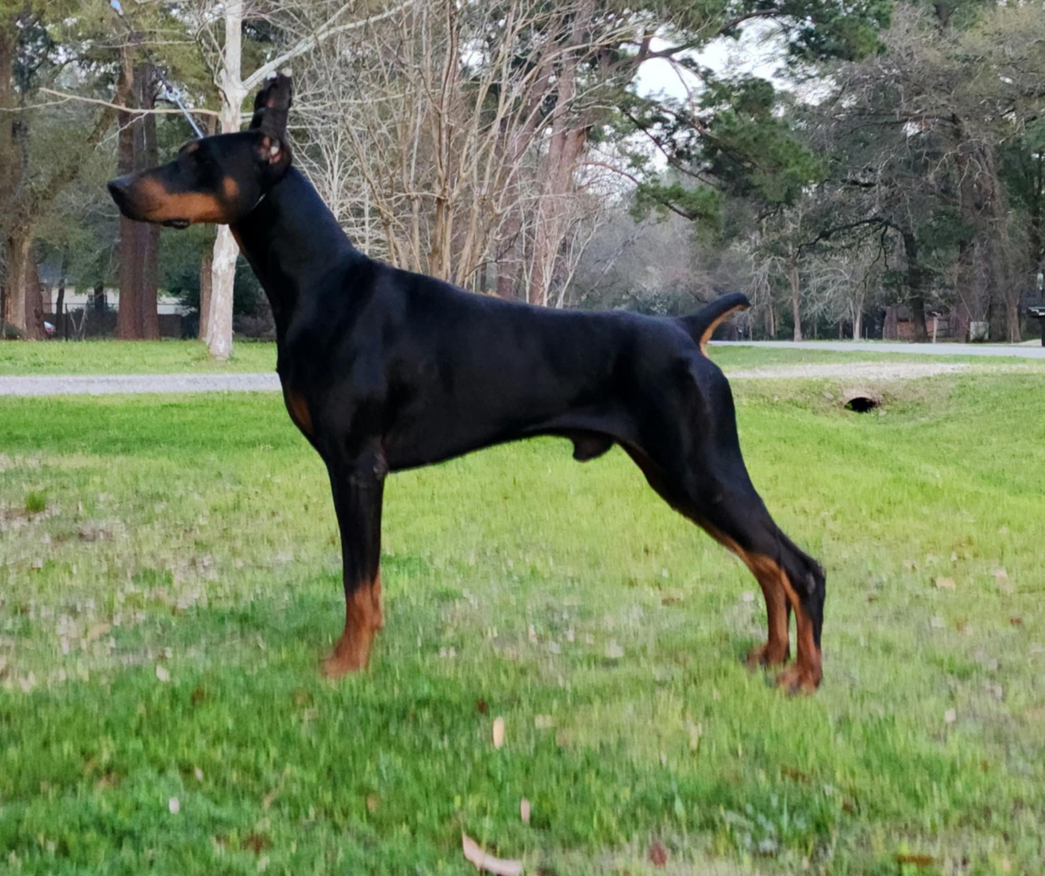 Dragggin Dobermans CEO Courtney is extremely helpful and despite car troubles she still able to deliver the lovely Doberman puppy from Houston to Clovis, NM to us. She is extremely knowledgeable about Doberman puppies and give us valuable information and techniques to raise a happy and healthy puppy. She also easily available after delivery of the puppy and continue to give us support. We are very happy with the lovely gentle and smart puppy from Courtney. The Draggin Dobermans kennel is the Best for Dobermans and highly recommended.