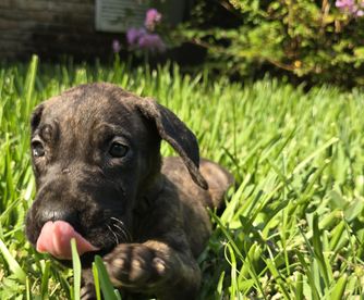 Our Doberman Pinscher puppies include black and rust and red and rust. Great Dane puppies include brindle and fawn. Colors will vary depending on the parent dogs.