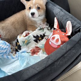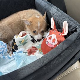 Renee was so wonderful to work with she answered all of our questions right away, was super easy to coordinate a pickup time and location with. She also provided the cutest little go home bag for our corgi pup with lots of necessities and goodies such as food, pee pads, toys, treats, a blanket with her moms scent on it, etc. Our puppy also came with a binder full of her information, records and baby pictures!! We definitely recommend Dragon Ridge Corgis and are so happy with our new little friend!