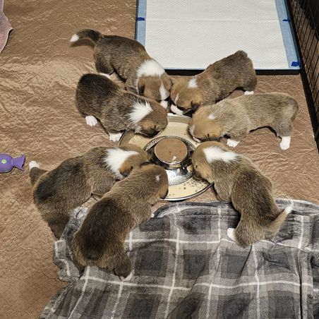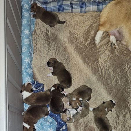 My love for raising puppies started on our family ranch. I would spend hours with my dad's hound dogs and cattle dogs. I started breeding Texas blue lacy dogs for my family to use on the ranch until we purchased our own home and I decided to change to corgis. As a vet tech I learned so much when it comes to maintaining the health and well-being of my dogs especially during pregnancy and whelping.