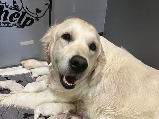 Magnolia is a female Golden Retriever. Carefully selected as a great representative of her breed, Malia decided to make her part of their program. Malia has passed Good Dog’s screening process, which involved a review of their breeding practices, environment, and the mental and physical health of their dogs.