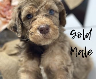Our Goldendoodle puppies include cream, red, and parti. Golden Retriever puppies are light golden. Colors will vary depending on the parent dogs.