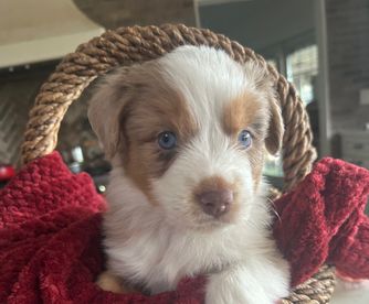Crosby is a male Miniature Australian Shepherd 4 weeks old. Carefully selected as a great representative of his breed, Heidi decided to make him part of their program. Heidi has passed Good Dog’s screening process, which involved a review of their breeding practices, environment, and the mental and physical health of their dogs.