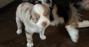 Our puppies include blue merle, black tri, red tri, and red merle. Colors will vary depending on the parent dogs.