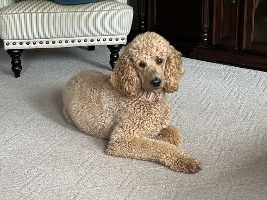 Dakota is a female Goldendoodle about 5 years old. Carefully selected as a great representative of her breed, Laura decided to make her part of their program. Laura has passed Good Dog’s screening process, which involved a review of their breeding practices, environment, and the mental and physical health of their dogs.