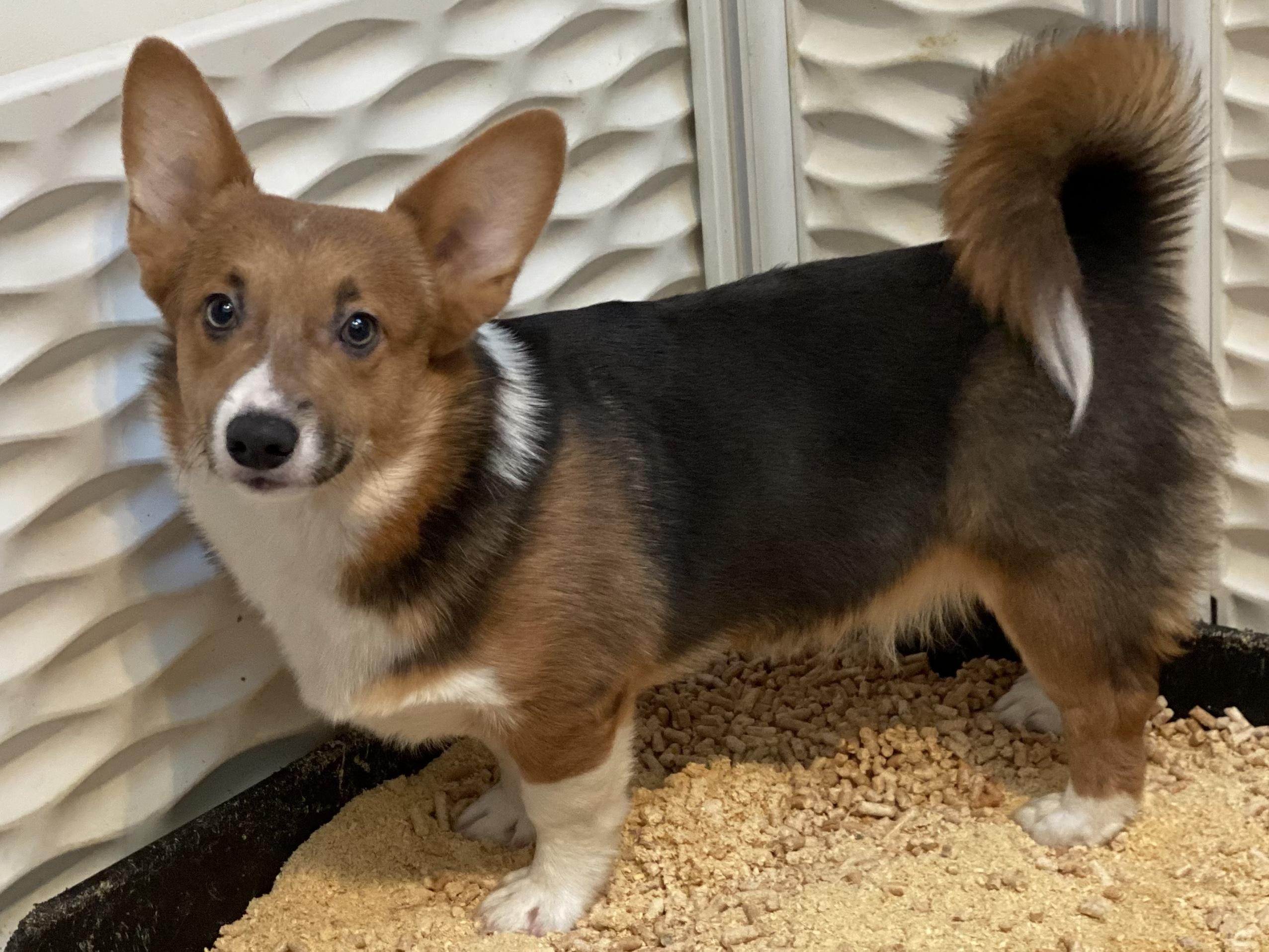 Domino is a female Cardigan Welsh Corgi. Carefully selected as a great representative of her breed, Debi decided to make her part of their program. Debi has passed Good Dog’s screening process, which involved a review of their breeding practices, environment, and the mental and physical health of their dogs.