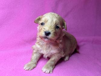 Our Maltese puppies are white. Maltipoo puppies include black & white, merle, apricot, black, brown, cream, red, and white. Poodle puppies include apricot and red. Goldendoodle puppies are red. Cockapoo puppies include brown and white, buff and white, buff, brown and tan, black and tan, and black. Colors will vary depending on the parent dogs.