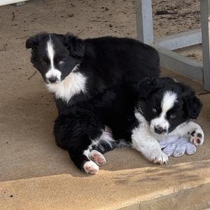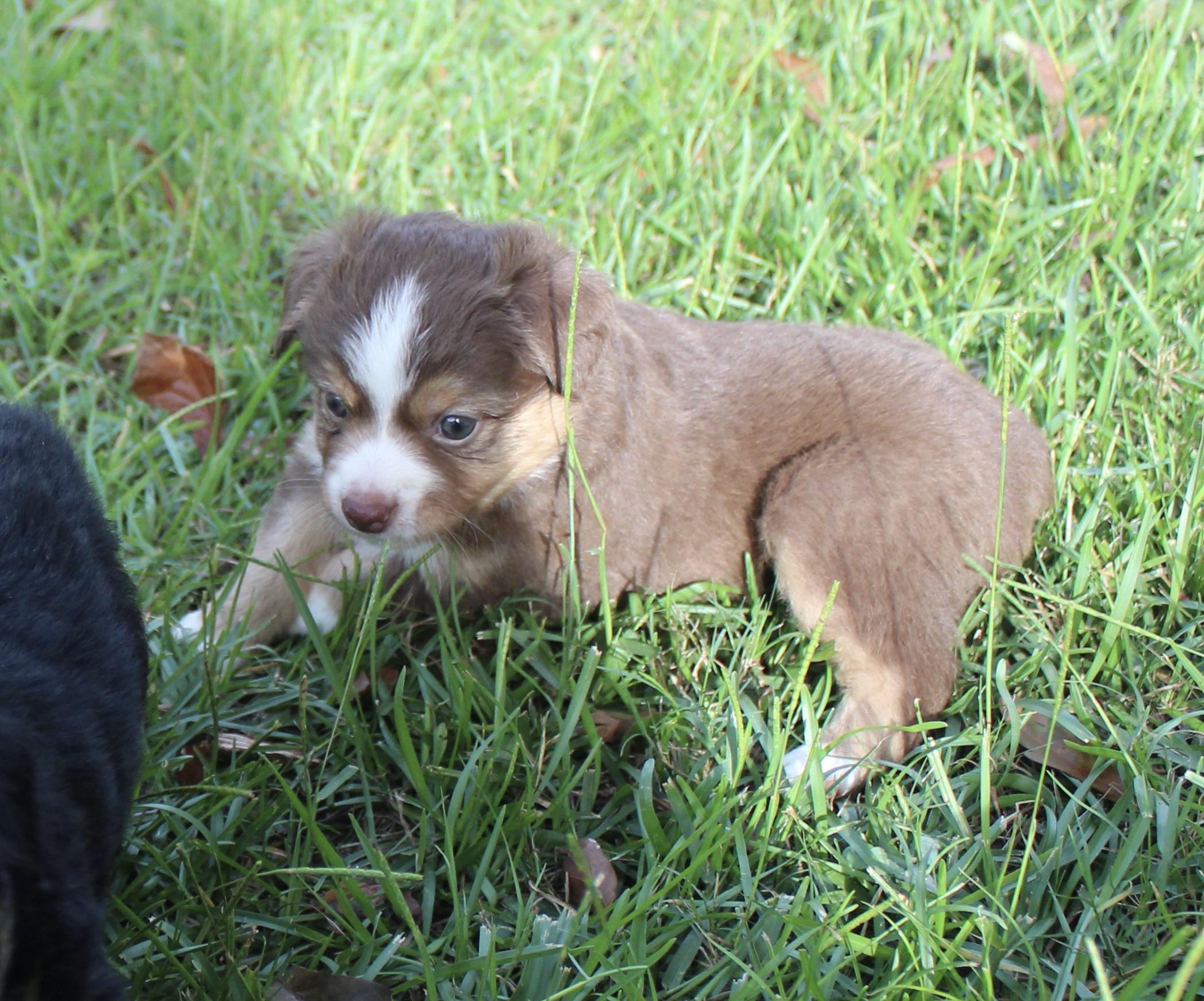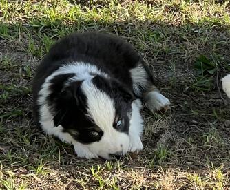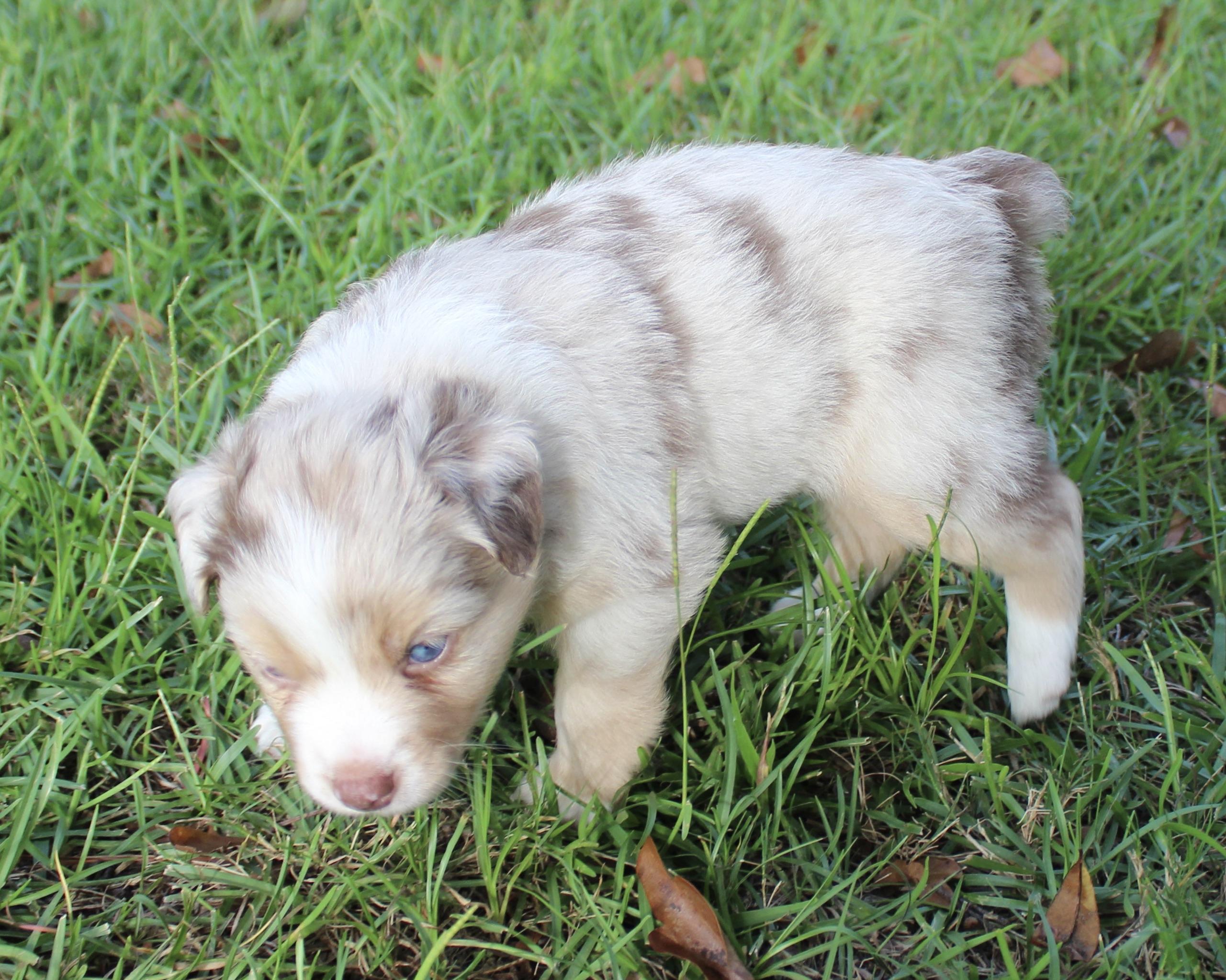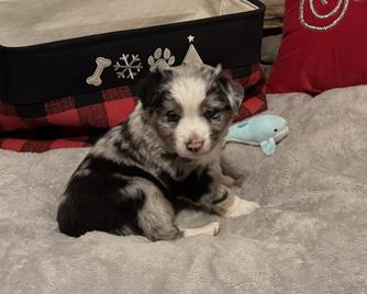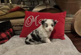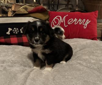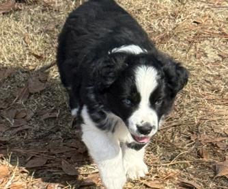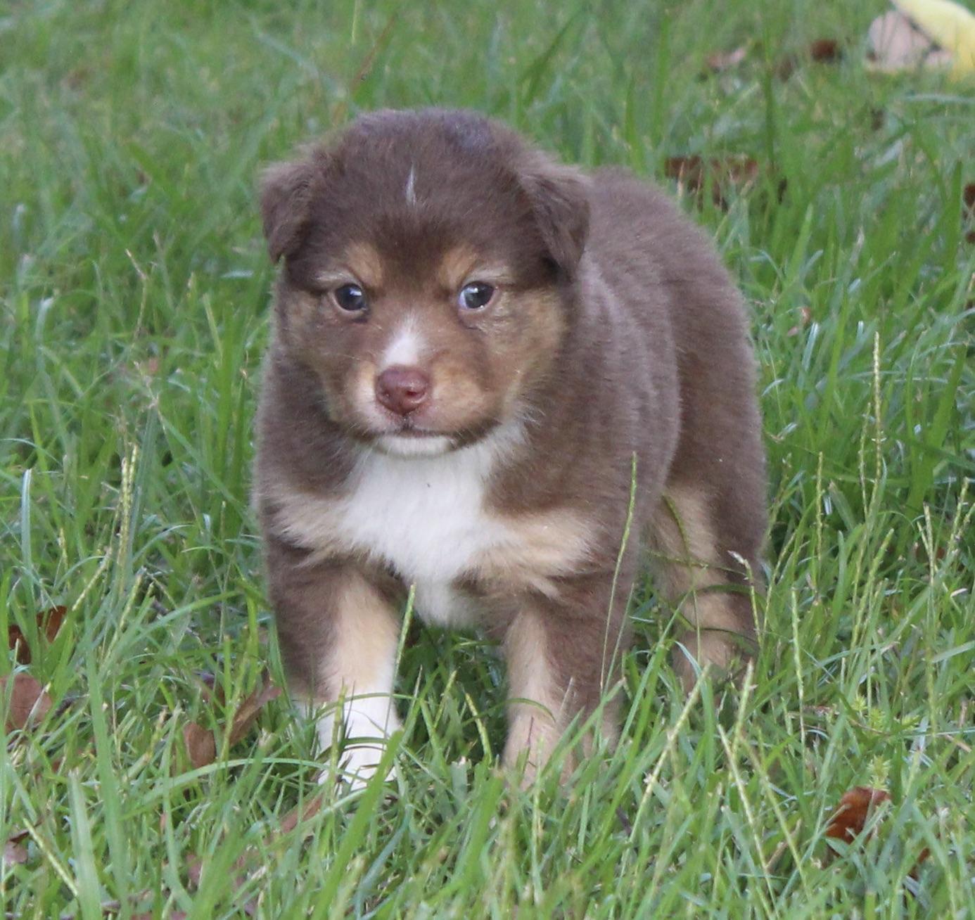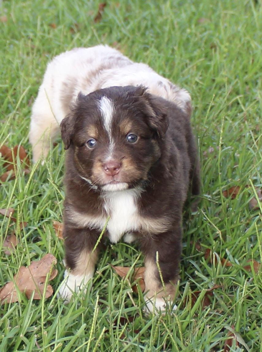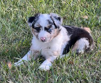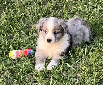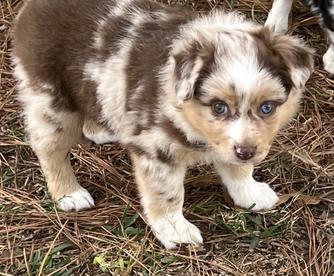 Our puppies include blue merle, black tri, and red tri. Colors will vary depending on the parent dogs.