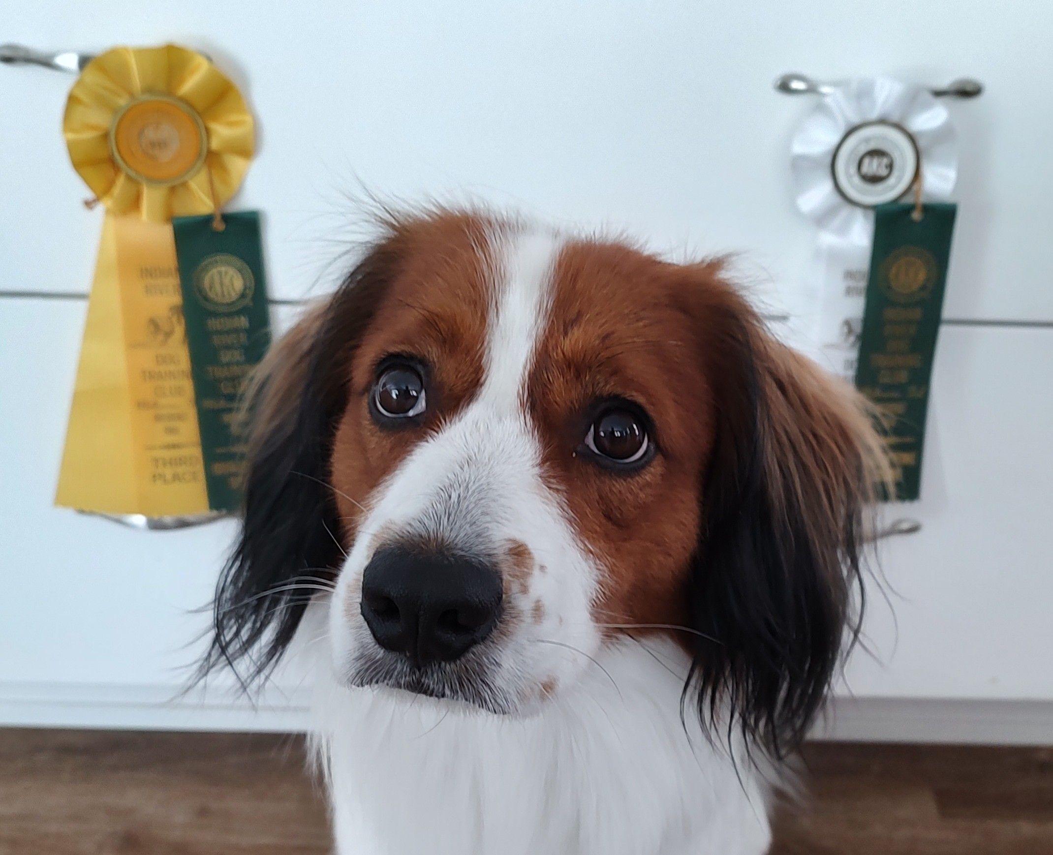 Harper is a male Nederlandse Kooikerhondje. Carefully selected as a great representative of his breed, Kimberley decided to make him part of their program. Kimberley has passed Good Dog’s screening process, which involved a review of their breeding practices, environment, and the mental and physical health of their dogs.