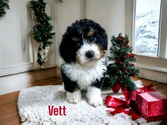 Bernedoodle puppies include tri-color and phantom. Colors will vary depending on the parent dogs.