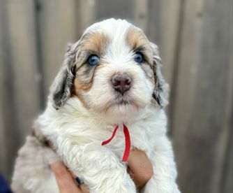 Momma Lulu will be expecting the most exotic Australian Mountain doodles in about 2-3 months! Waitlist is OPEN! Medium, 35-45lbs, perfect cuddle size!!! Expecting all the classic colors: blue merle tri color, chocolate merle tri color, black tri color, chocolate tri color, reds, abstracts and parti’s! Blue eyes, green/hazel eyes, and heterochromia expected!! So excited for these beautiful babies with great temperaments and high intelligence! Insta: DREAMSBYDOODLES