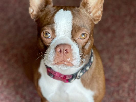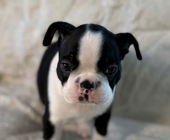 Juno is a female Boston Terrier. Carefully selected as a great representative of her breed, Misty decided to make her part of their program. Misty has passed Good Dog’s screening process, which involved a review of their breeding practices, environment, and the mental and physical health of their dogs.