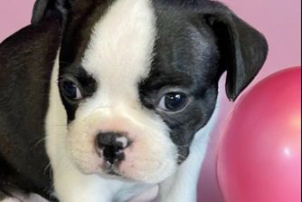 BamBam is a male Boston Terrier. Carefully selected as a great representative of his breed, Misty decided to make him part of their program. Misty has passed Good Dog’s screening process, which involved a review of their breeding practices, environment, and the mental and physical health of their dogs.