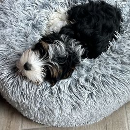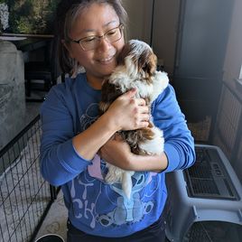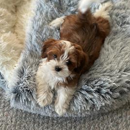 Love love our pup! I explained to Cheryl that I was a stroke survivor with some disabilities. She recommended one of the pups over others due to his personality. She sure chose the right one for me! We’ve had Basil just 10 days and he’s already integrated so well in our family, with both dogs and cats. He’s still a little intimidated by my 100-lb lab, but he’s getting braver every day! I can’t imagine life without him. He’s playful and the cutest goof, but when I need to rest he’s right beside me. We had Basil flown into Salt Lake City. Even with his flight and our long drive home, he never once complained. Cheryl made the process very easy, and I would highly recommend getting one of her pups.