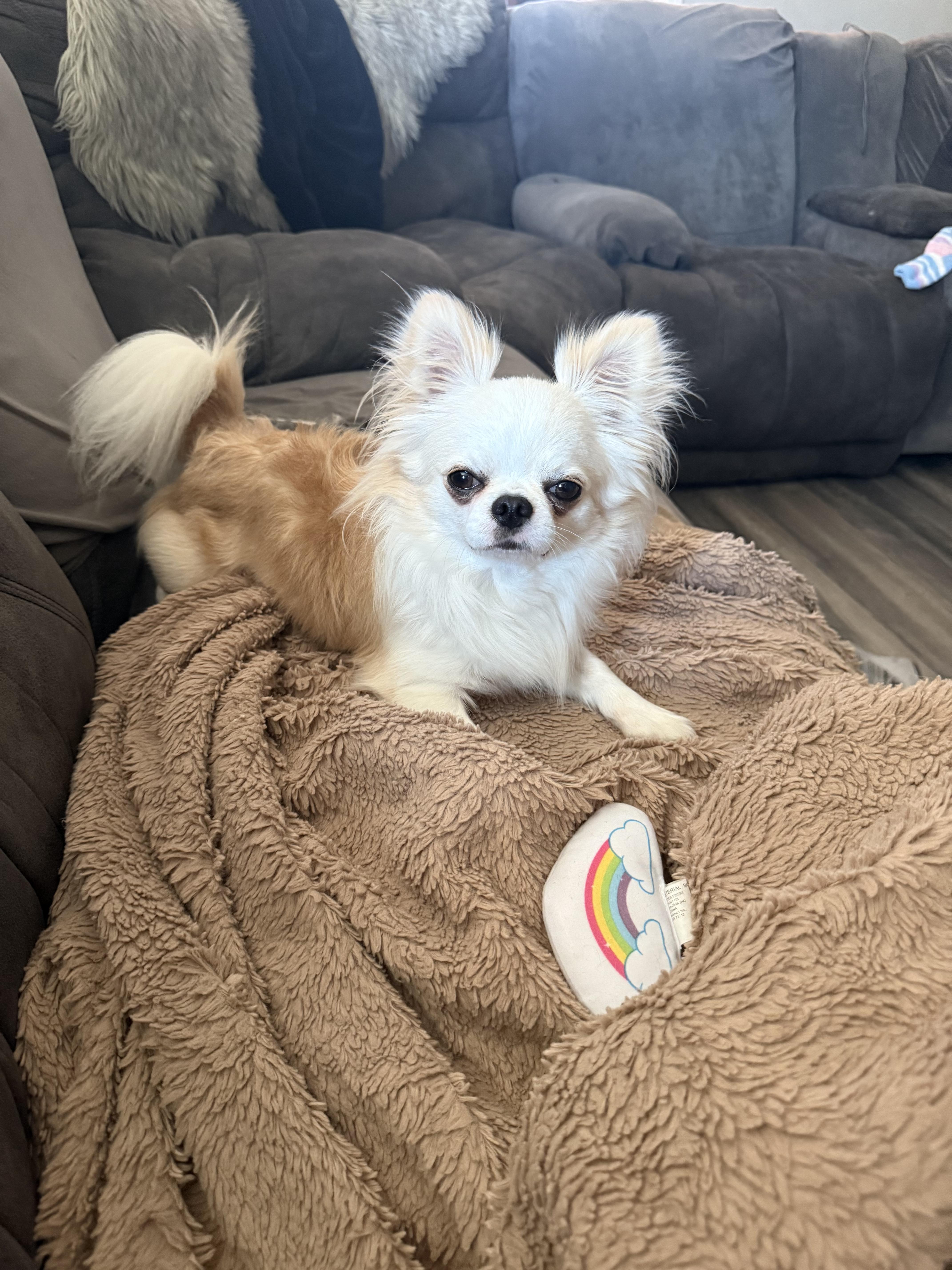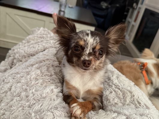 She loves being the center of attention and has a gentle but unmistakable way of claiming “her” lap first. Whether she’s gazing up with those soulful eyes or waiting patiently for a treat, Dior embodies true Chihuahua royalty. 👑