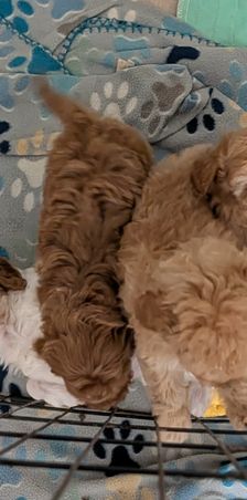 Our Cavapoo puppies include toy and miniature sizes. Cockapoo puppies are mini size. Sizes will vary depending on the parent dogs.