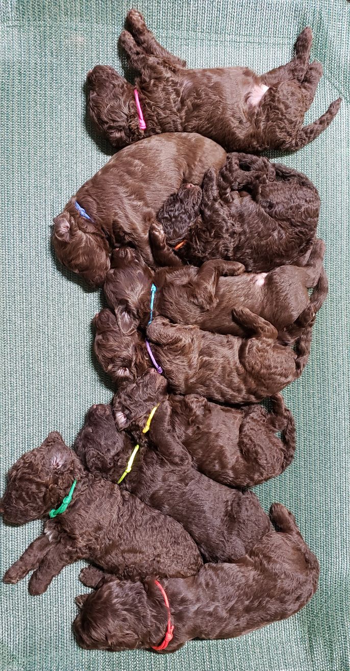 Our puppies are chocolate. Colors will vary depending on the parent dogs.