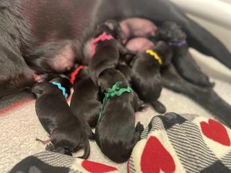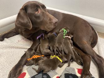 Our puppies include black, chocolate, and yellow. Colors will vary depending on the parent dogs.