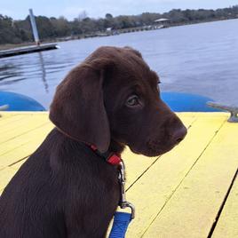 We knew that we wanted a chocolate. What we didn't expect was to be introduced to a seasoned and super caring breeder. Sunny comes from an immaculate bloodline, and though only nine weeks, she has made it clear that she will forever be a loyal companion. It's a definite plus if you have a water source for these pups as they are agile and innate swimmers. Beth, from the get go, was very interested in our lifestyle to see if there may be a fit. She was more concerned about Jazz X Jackson's pups than trying to find them a home. From A to Z she had all bases covered and Sunny came home with a plethora of how to's-- so happy that we found them and will definitely refer them to anyone looking for a top of the line, life-long companion.