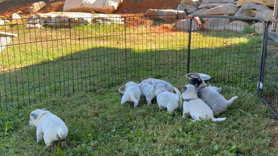 We have a small program that currently consist of 3 dogs. We treat our dogs as part of the family and they are able to experience a lot of different activities on our extensive acreage. Our puppies are raised inside our home, then brought outside in the daytime when weather permits! they are exposed to many different things and well socialized.