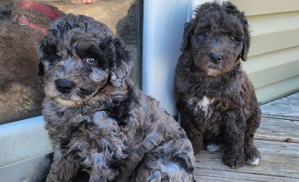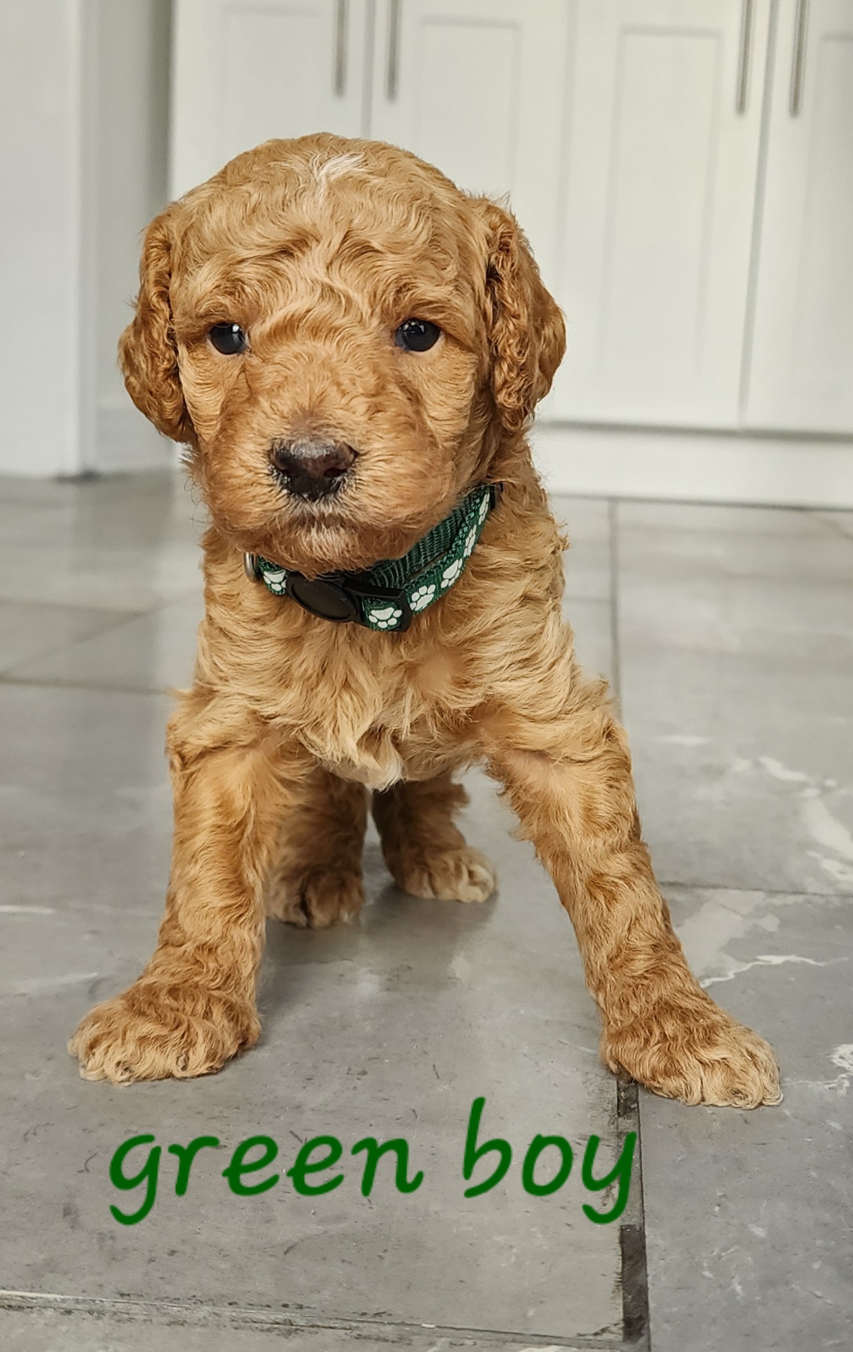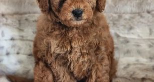 Our Poodle puppies are miniature size. Goldendoodle puppies are miniature size. Sizes will vary depending on the parent dogs.