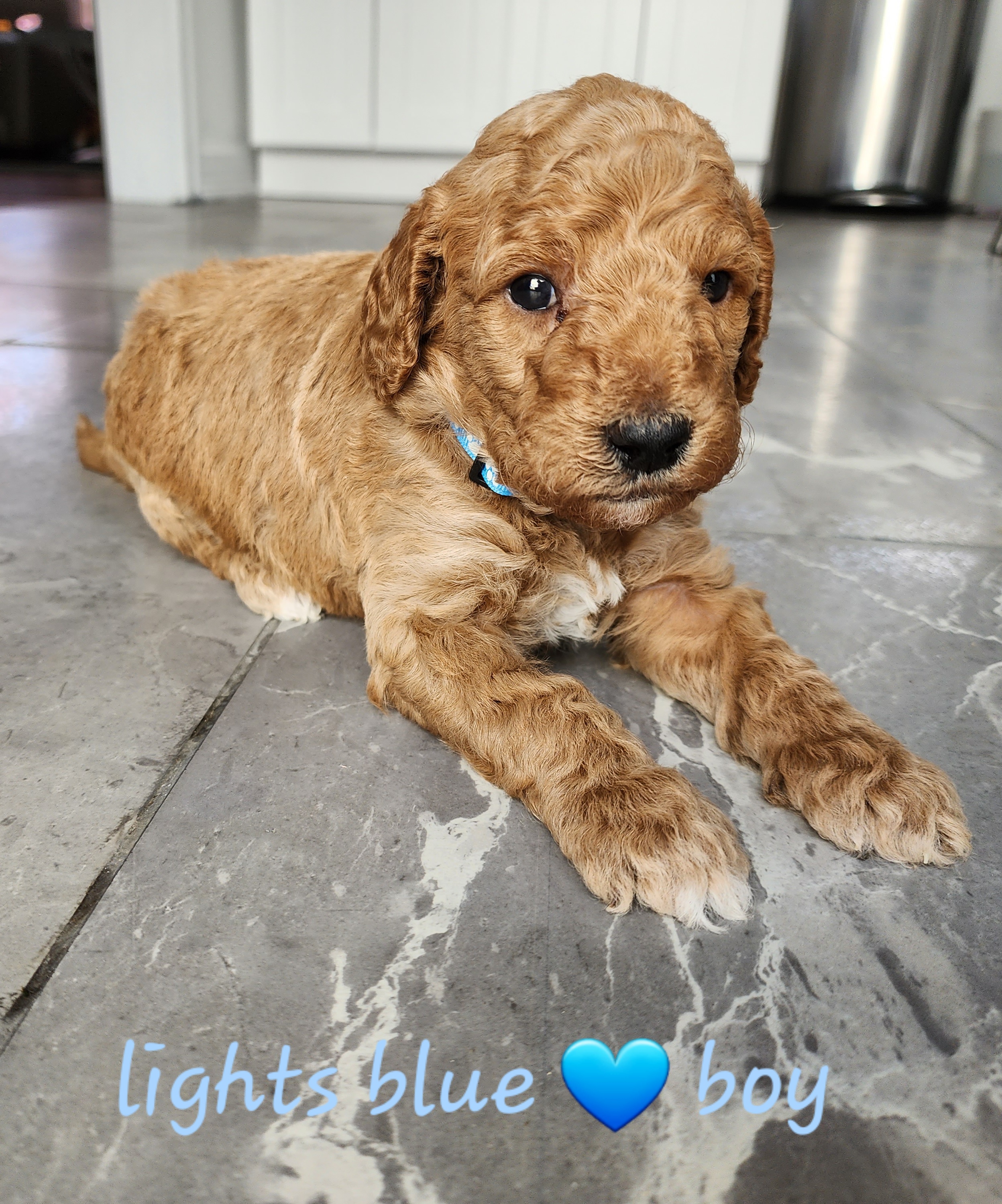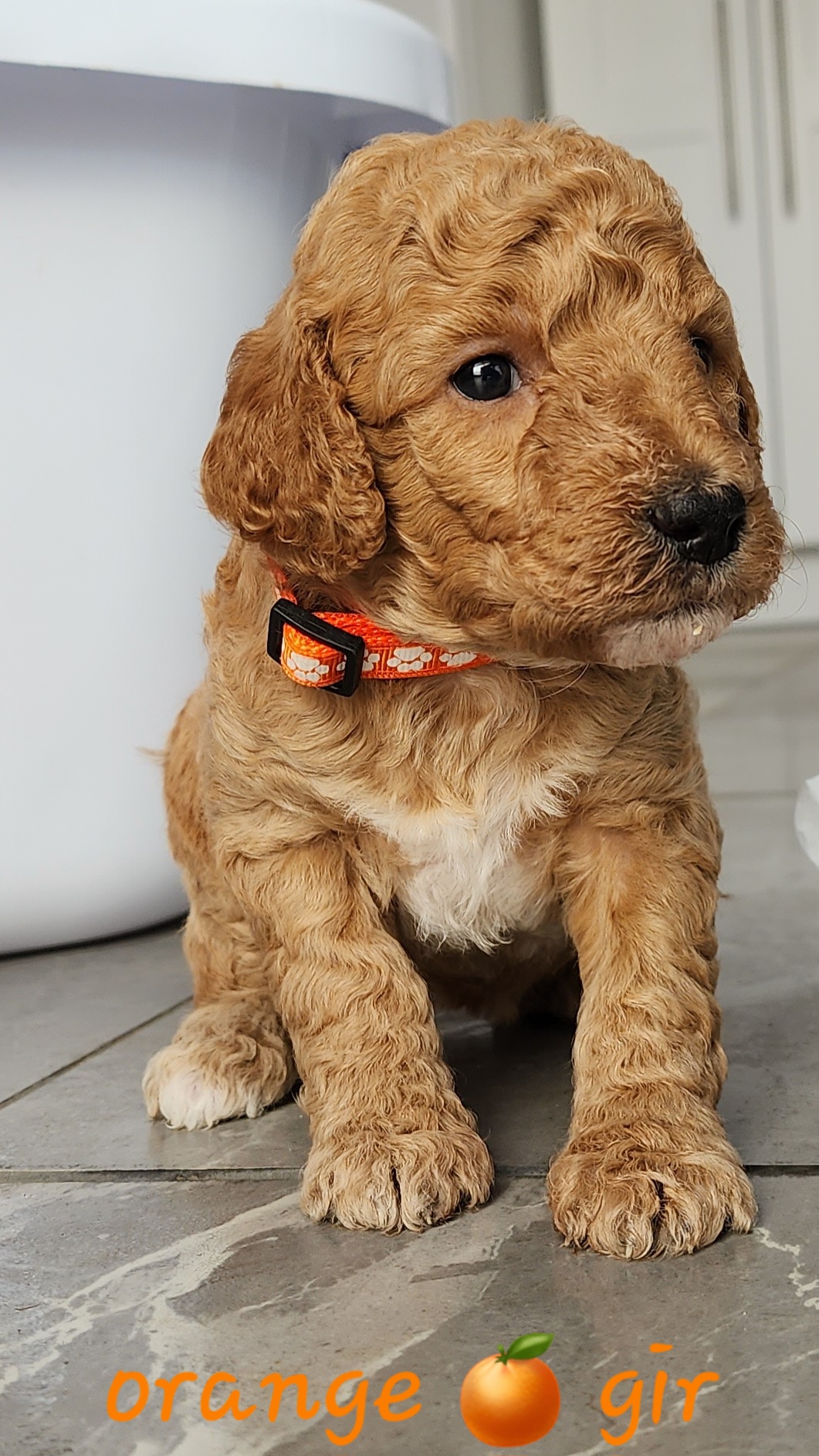 Goldendoodle puppies include apricot, red, chocolate, black, and parti. Colors will vary depending on the parent dogs.