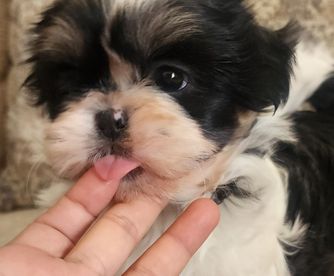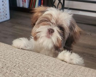 Jack is such a sweet boy. He loves to play catch and his treats. He is a gold tricolor shihtzu that comes from a line of champion show dogs. Both his parents were imported from Ukraine.
